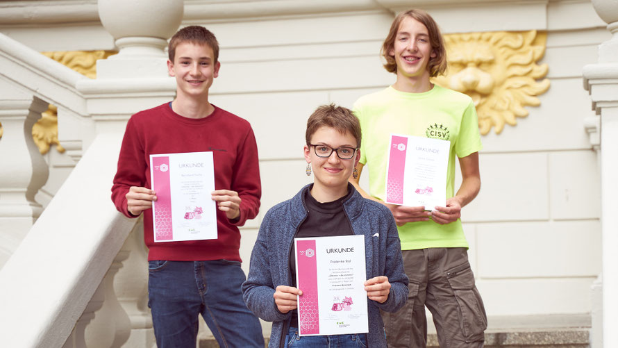 Dass so manche Sprachlehrerin Frederike jetzt im Unterricht vermisst, kommentiert sie mit einem Augenzwinkern: „Ich habe meine Chemielehrerin damit glücklich gemacht." In Frederikes Mund sind das keine leeren Worte, wie die wiederholten Erfolge bei nationalen und internationalen MINT-Wettbewerben beweisen: ein Regionalrundensieg und ein Titel als zweitbeste theoretische Chemikerin Deutschlands beim Bundeswettbewerb Chemie – die stimmt! waren dabei nur der Anfang. Ihr neuester Coup ist der erste Platz bei der Europäischen Olympiade für Experimentelle Wissenschaft (EOES), bei dem sie für Deutschland als Teil eines dreiköpfigen Teams angetreten ist.
