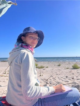 Anm. d. Red.: die Fotos zeigen Marie am Ostseestrand beim Lösen von Physikaufgaben und beim Praktikum in einem Krankenhaus.