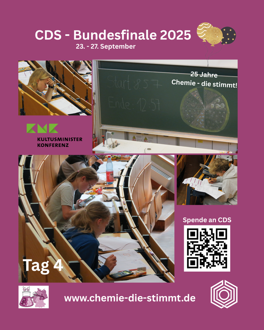 Unsere 37 Finalistinnen und Finalisten befinden sich derzeit im Labor und absolvieren die fünf stündige Praxisklausur. Die Daumen dürfen also gedrückt werden! Diesmal sollten so spektakuläre Reaktionen wie während des Experimentalvortrages allerdings ausbleiben!